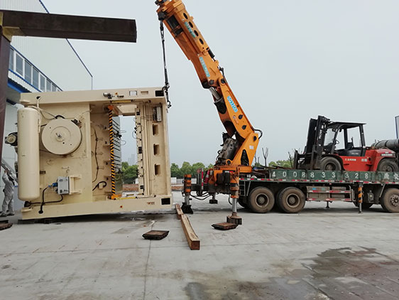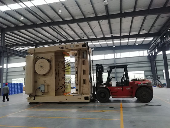 培訓(xùn)后我們開始工作了,自重67噸的400噸中型沖床體積太大,80噸折臂隨車吊因配重不夠要將10噸叉車吊到隨車吊車上作配重,然后起吊半掛貨車上倒放的沖床放地面上。廠門寬3米,倒放的沖床無法搬運到車間里面,吊車又將設(shè)備打翻立起來,用窄面進廠門,落吊之前把搬運坦克車放在沖床下面,現(xiàn)在10噸叉車派上用場了,我用叉車將大沖床慢慢往車間推,速度慢得像螞蟻一樣一點點的往前進,還換了多次方向到安裝基坑附近,再由吊車打翻按安裝要求就位,搞到半夜才圓滿足完成。